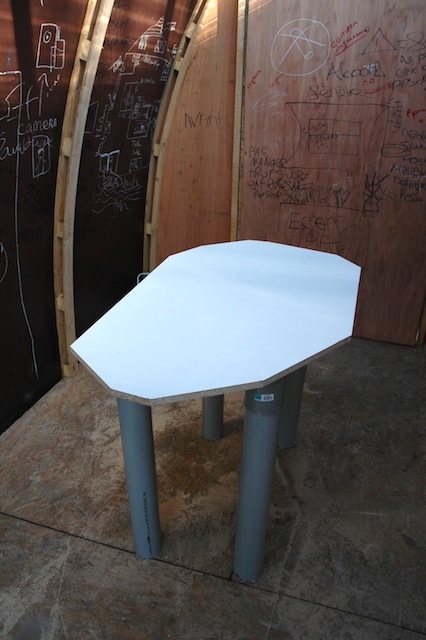 L'armoire se dote d'une première étagère faisant également office de système de guidage, les toilettes jusqu'ici simple trou ouvert sur la Loire gagnent en confort avec une cuvette à couvercle.